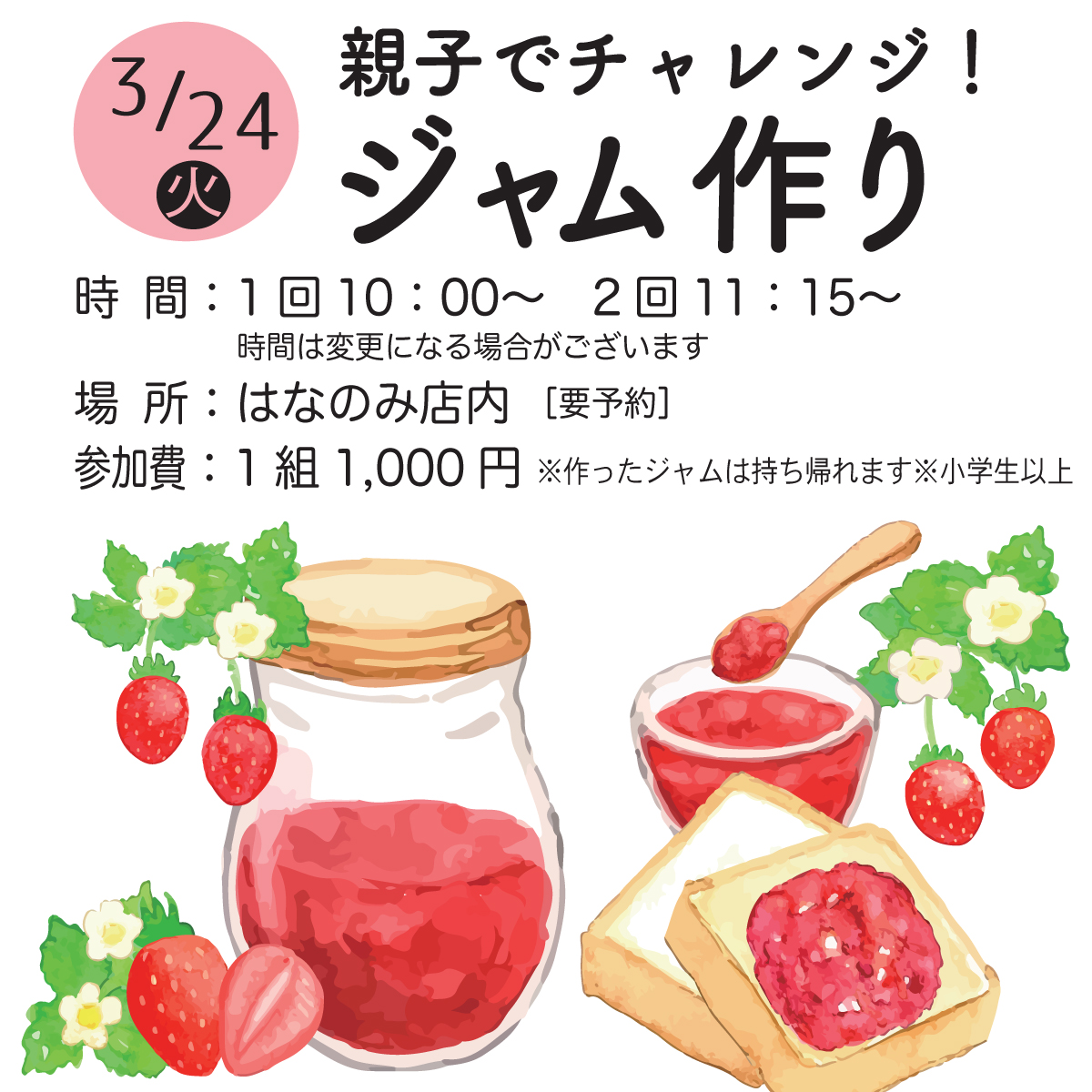 春休みにお子様と一緒にはなのみでジャムを作ってみませんか?