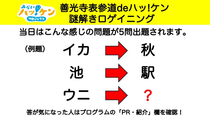 TOP > 習い事・体験プログラム検索 > 善光寺表参道deハッ!ケン謎解きロゲイニング
