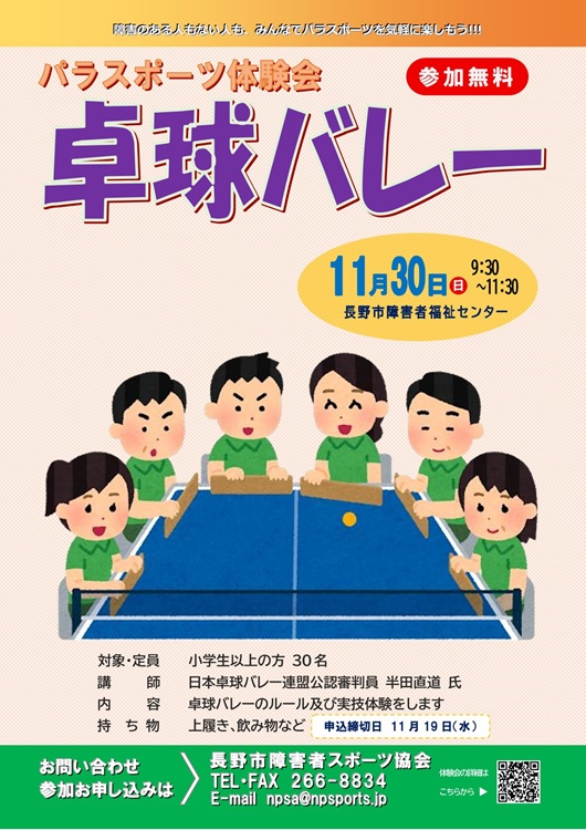 長野市障害者スポーツ協会 TEL/FAX共通:026-266-8834 E-mail:[email protected]