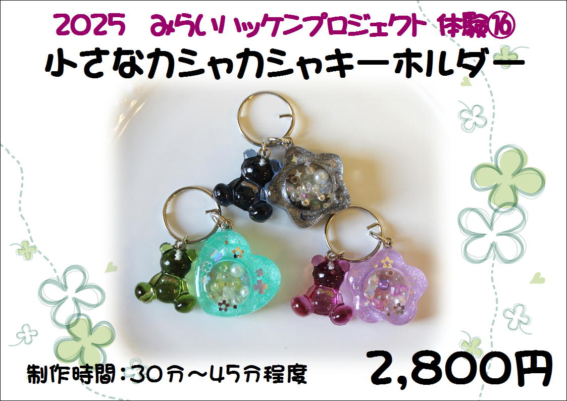 こちらの体験をご希望の方は「⑯期間限定小さなカシャカシャキーホルダー」とお知らせ下さい。