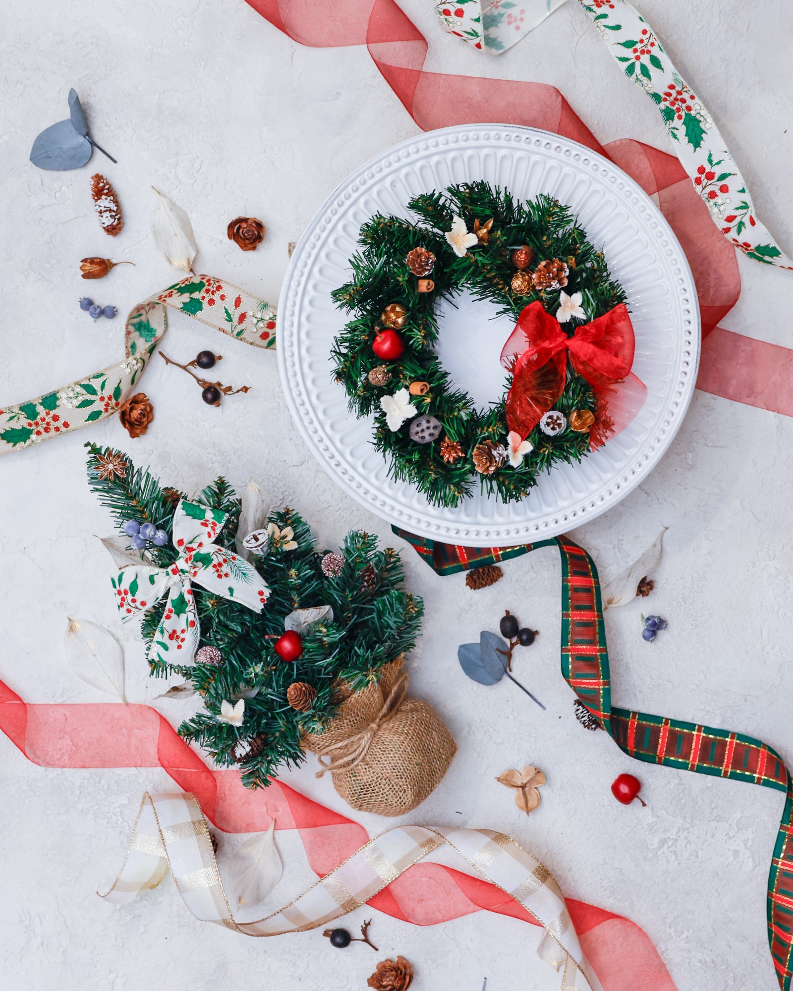 (作品サイズ:ツリー高さ約40センチ リース約25センチ)