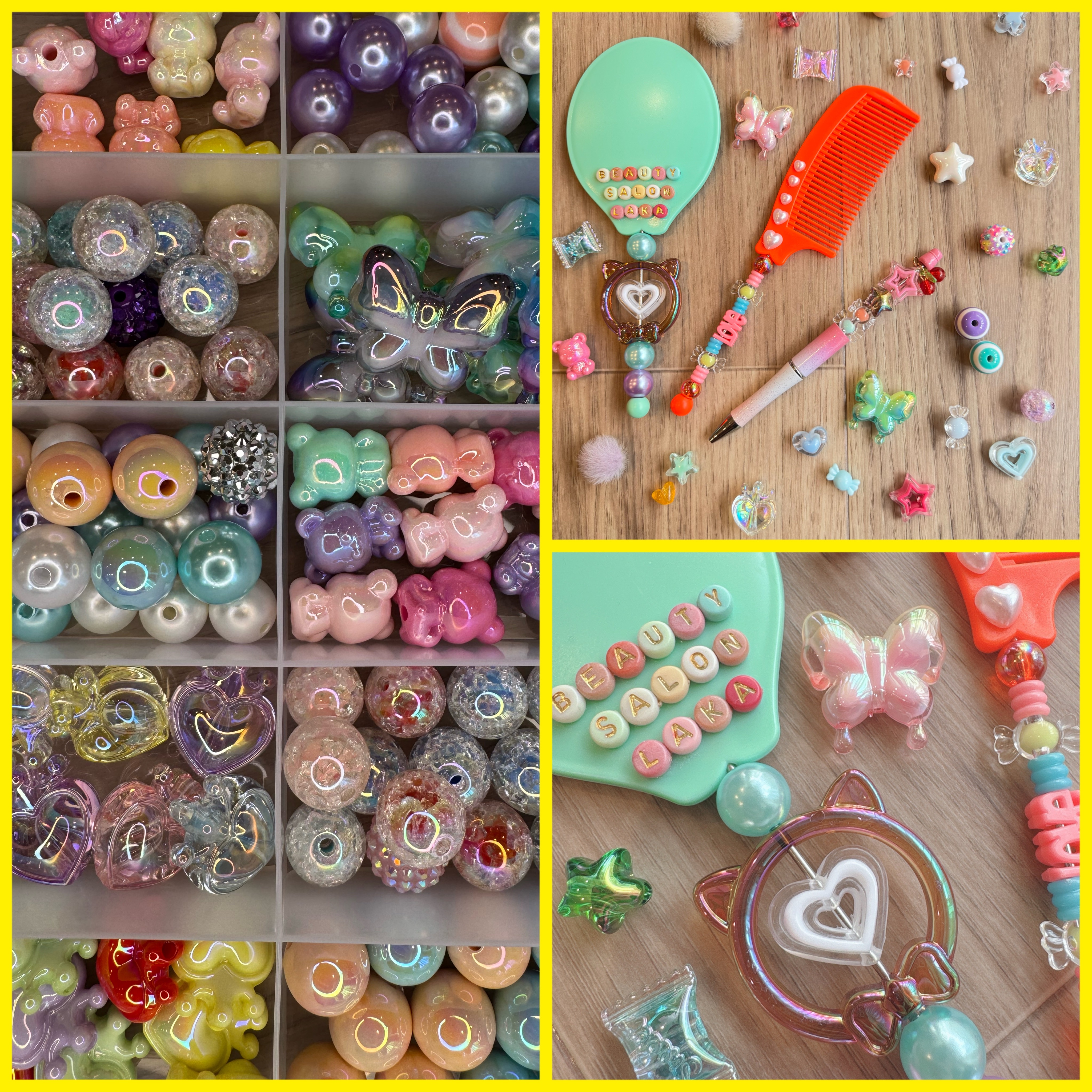 ミラー又はコームとペンのセットをお選びの方はデコレーション専用のパーツを使って名前を入れもできます♪