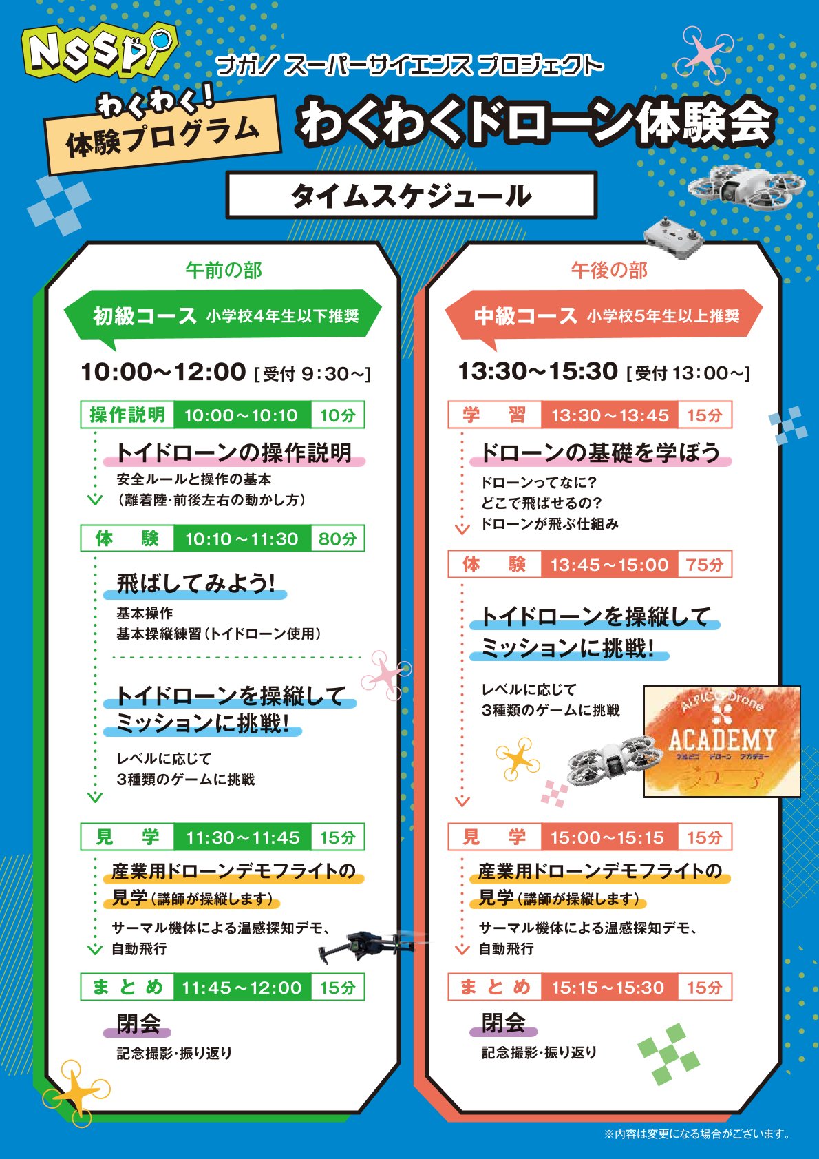 ナガノスーパーサイエンスプロジェクトとは家庭でも学校でもない場所で自由な発想によるわくわくする科学などの講座を企業、地域、大学などと連携して開催する事業です。