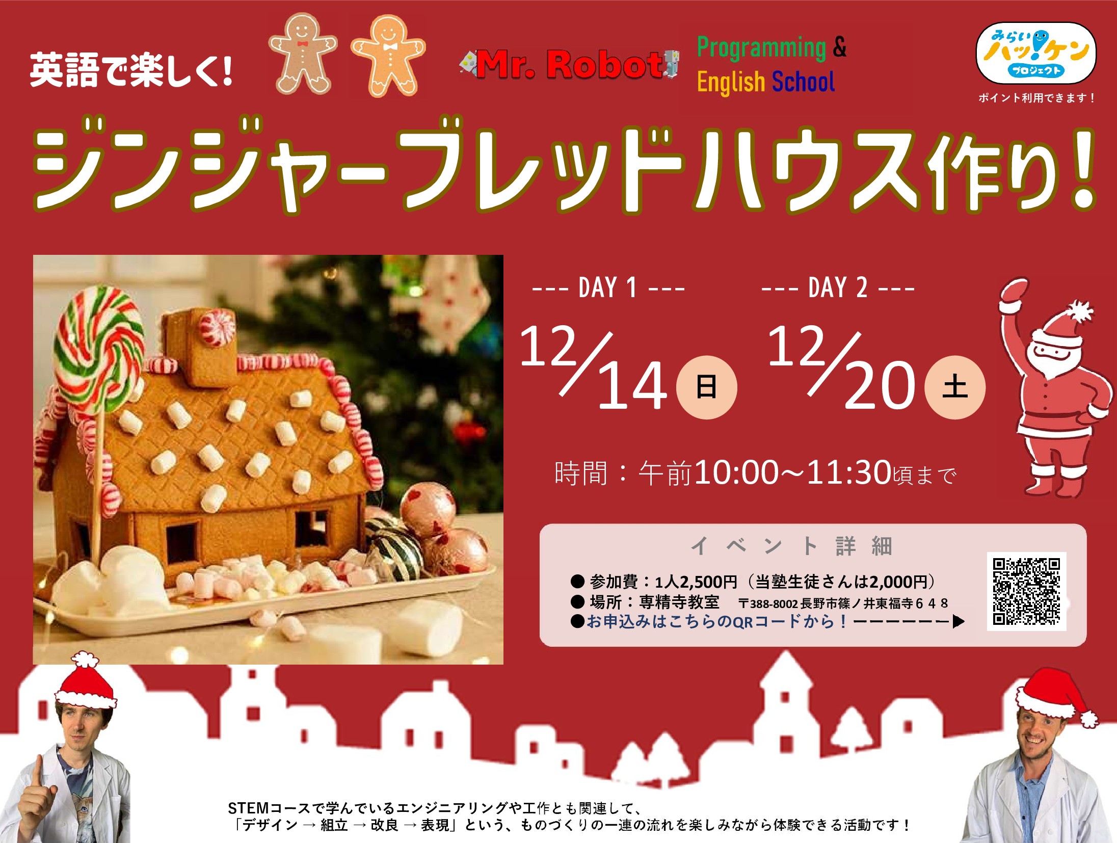 この冬、Mr.Robotでは、クリスマスのスペシャルイベント、英語で楽しく!ジンジャーブレッドハウス作り!を行います。
