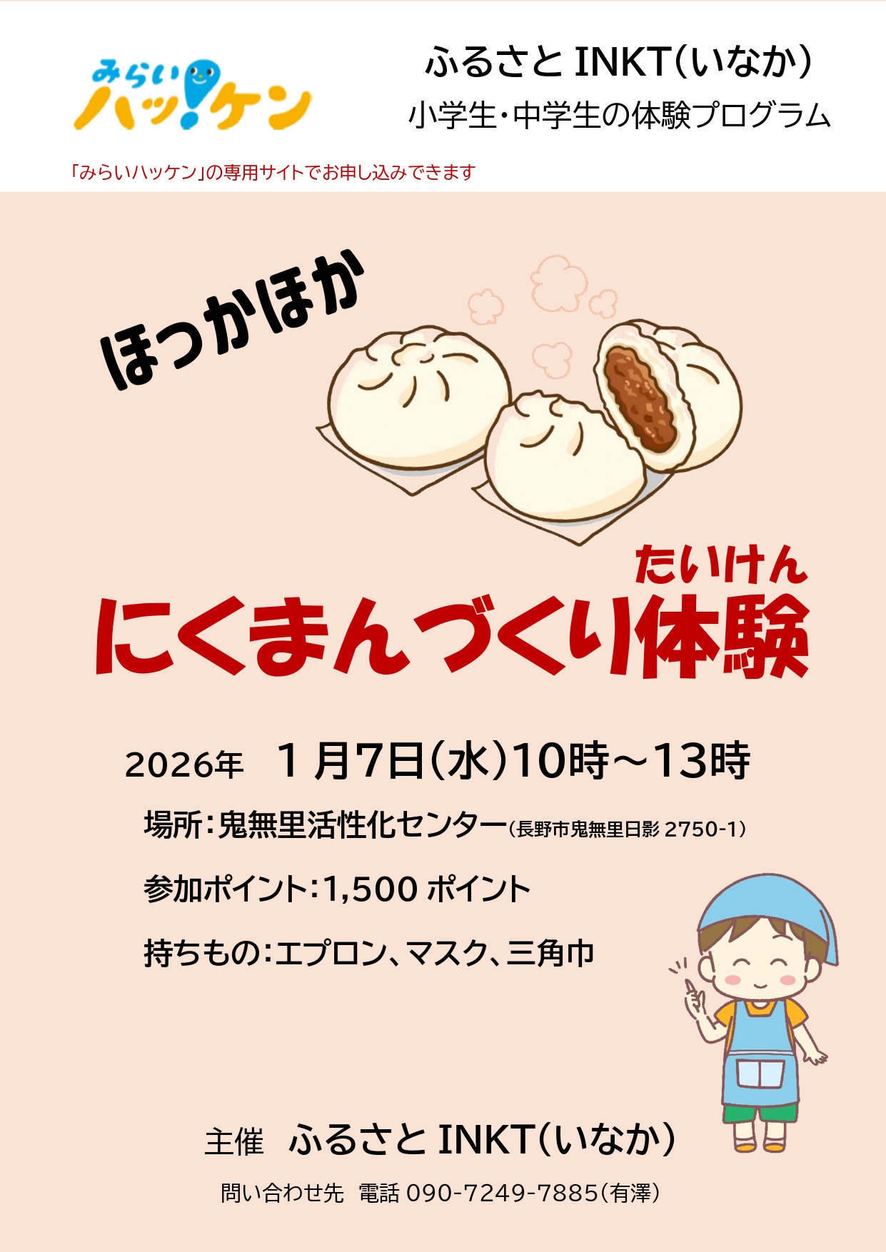 TOP > 習い事・体験プログラム検索 > ほっかほか!にくまんづくり体験