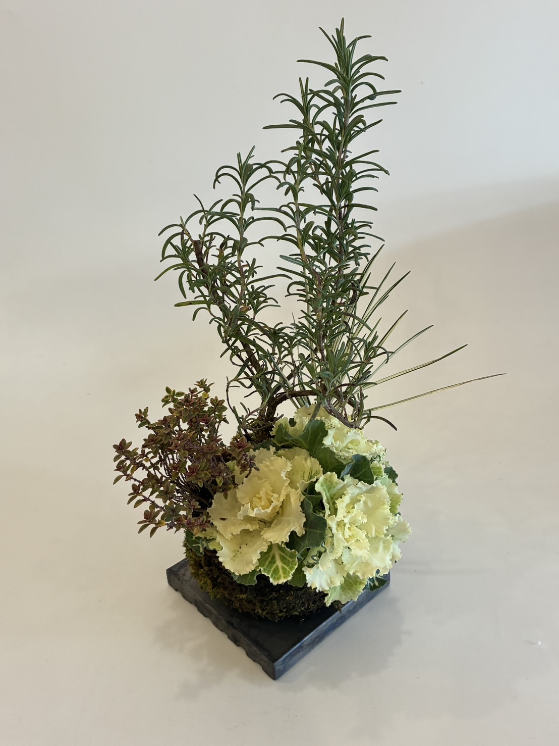 今回は苔玉に、ハーブを組み合わせて自分好みに仕上げていきます。お部屋で過ごす時間の多くなるこの時期にもおすすめの、素敵な香りが楽しめる作品です。