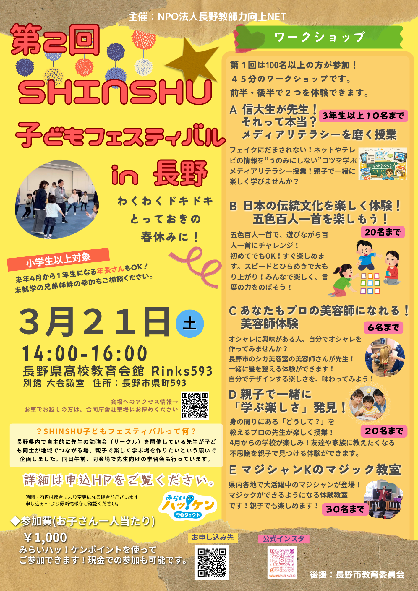 TOP > 習い事・体験プログラム検索 > 第2回Shinshu 子どもフェスティバル in 長野