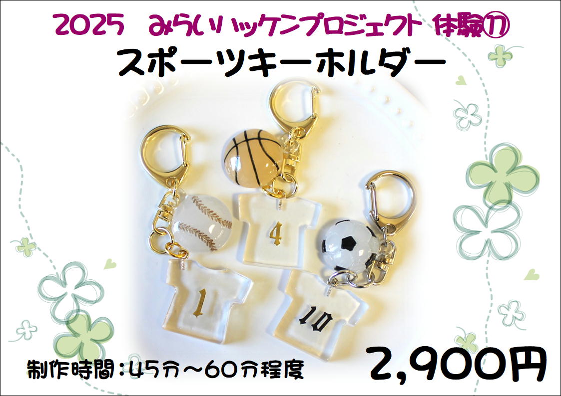 こちらの体験をご希望の方は「⑰スポーツキーホルダー」とお知らせ下さい。