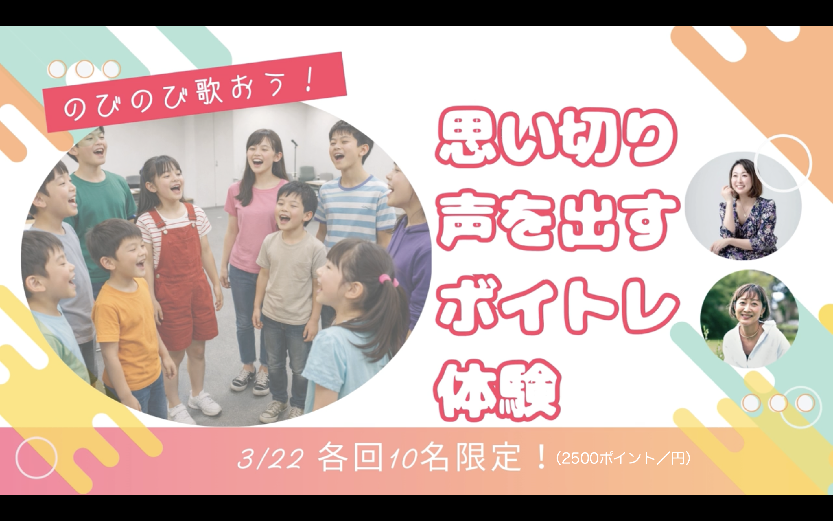 【3/22開催】のびのび歌おう!思いきり声を出すボイトレ体験(各回10名限定)