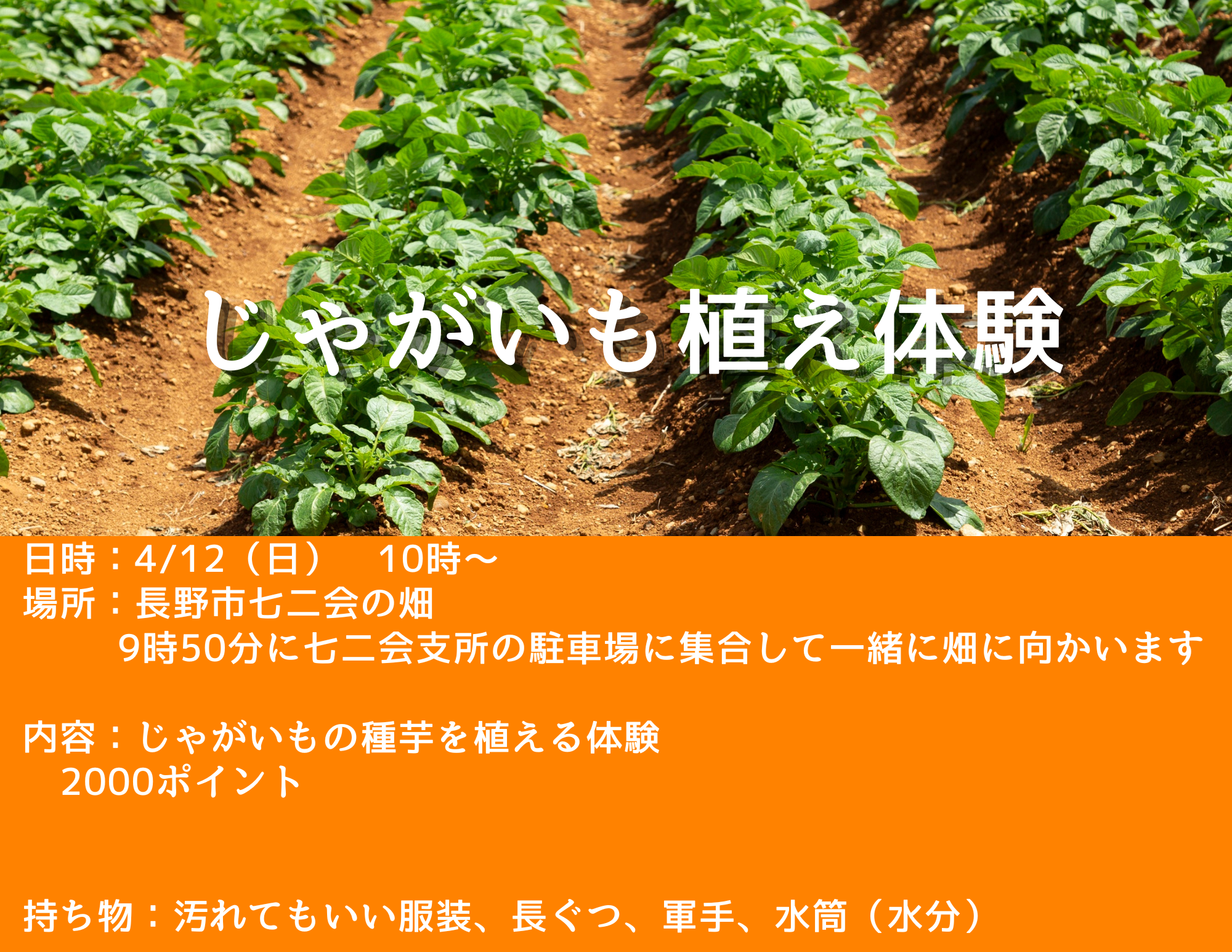 種芋の観察、畑の耕し方、春の長野の自然を感じることができる農業体験です。