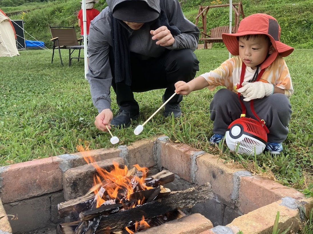 参加者同士協力してタープをたてたり、焼きマシュマロも楽しみましょう!