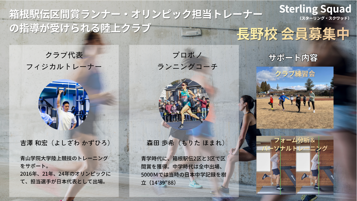Sterling Squadは、「日本で最も専門的なランニングクラブ」を目指し、長野を拠点に活動する中長距離特化型の陸上クラブです。
