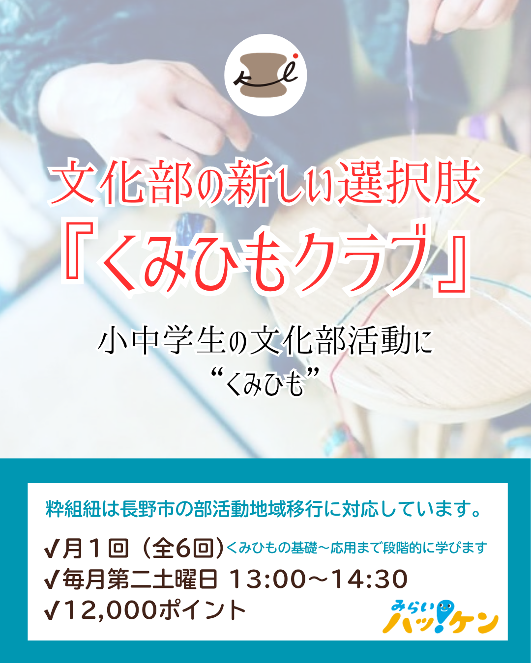 小中学生のための“文化部活動”としてのくみひもクラブです。