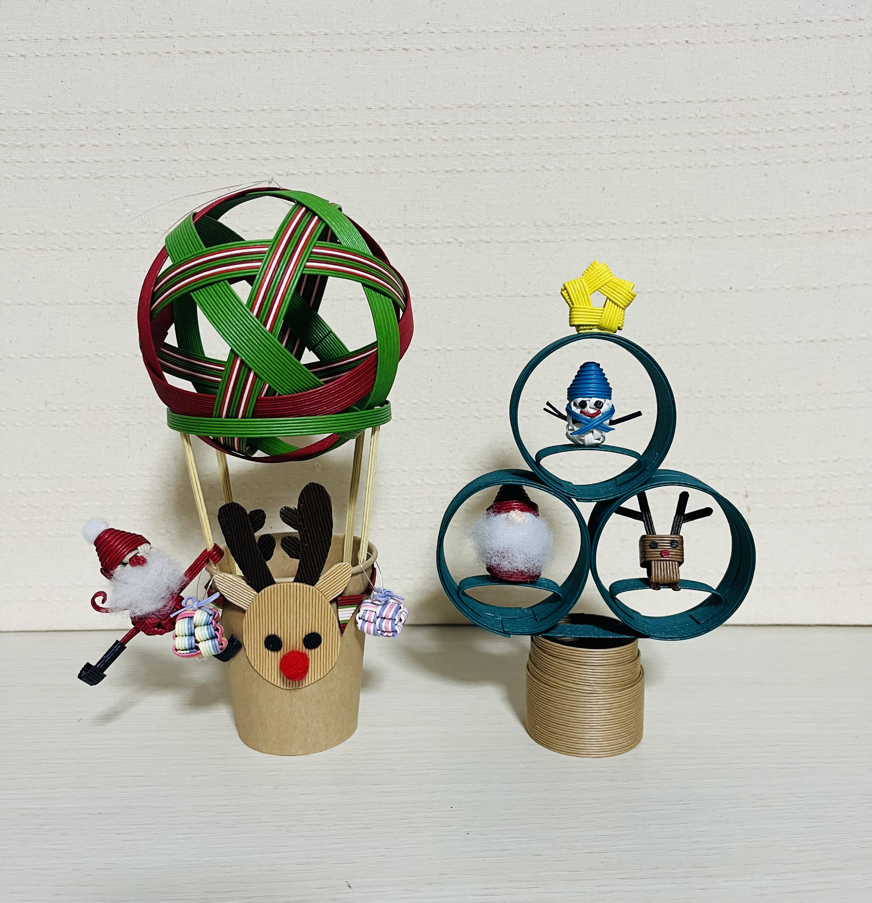 11月〜体験で作れる季節の飾りはミニツリーとトナカイの気球。